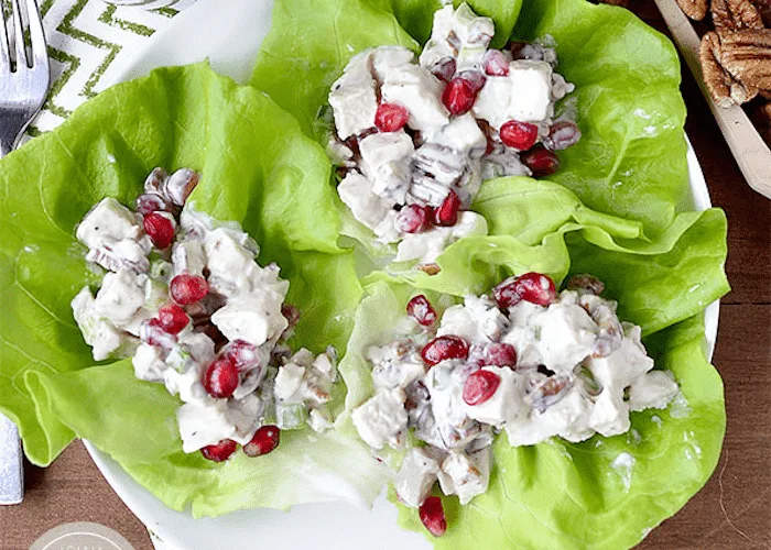 High protein, low carb, and heavenly! This big, hearty salad has only 394 calories, 32 grams of protein, and 8 grams of carbohydrates per serving. Add this to your weekly meal planning and prep routine to have this salad ready in minutes for lunch or dinner any day of the week.
