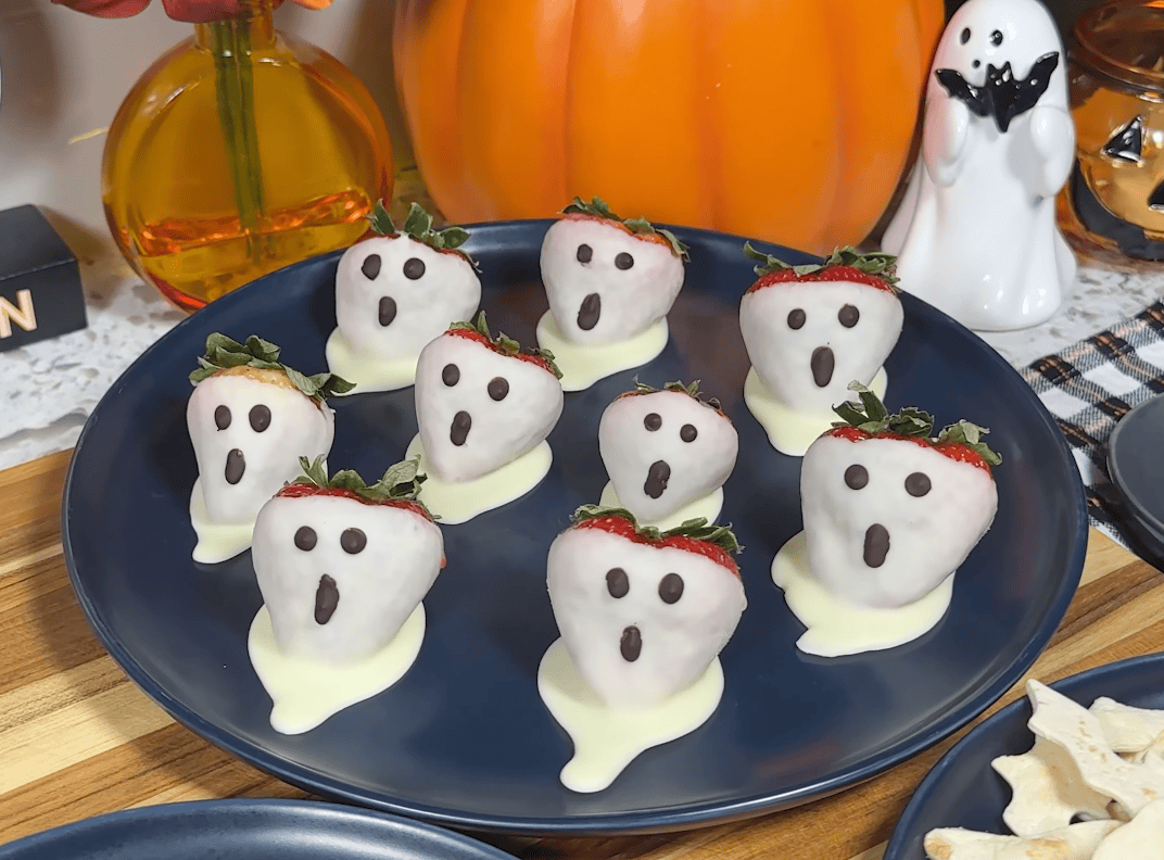 You’ll find everything from chocolate-dipped strawberry ghosts to a pumpkin-shaped cheese ball, all designed to deliver flavor and fun without a lot of sugar.
