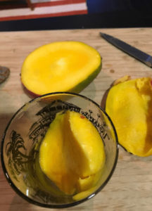 – Dann ca. 4-6 gefrorenen Bananenstückchen dazugeben (je nach Belieben und wie viel Platz im Mixer ist)